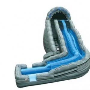 The world's first dual lane curved water slide! Experience the thrill of riding the rapids down this wet mountain of fun. Riders shoot down individual sliding lanes where they encounter the thrill of a bump in the rapids before they scream around the curve and make a soft splash landing.